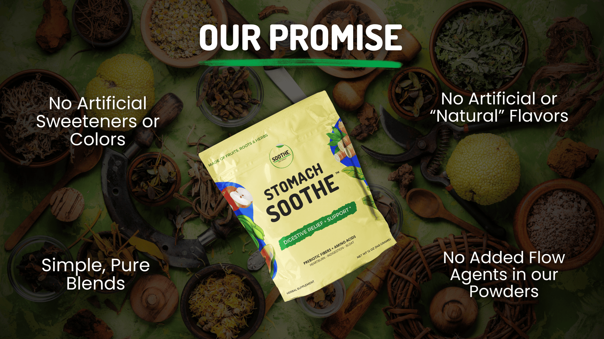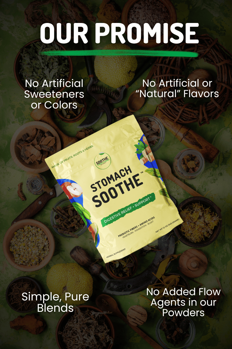 Stomach Soothe™ is a convenient, ready-to-drink powder made exclusively with fruits, roots, and herbs renowned for their digestive relief properties.
