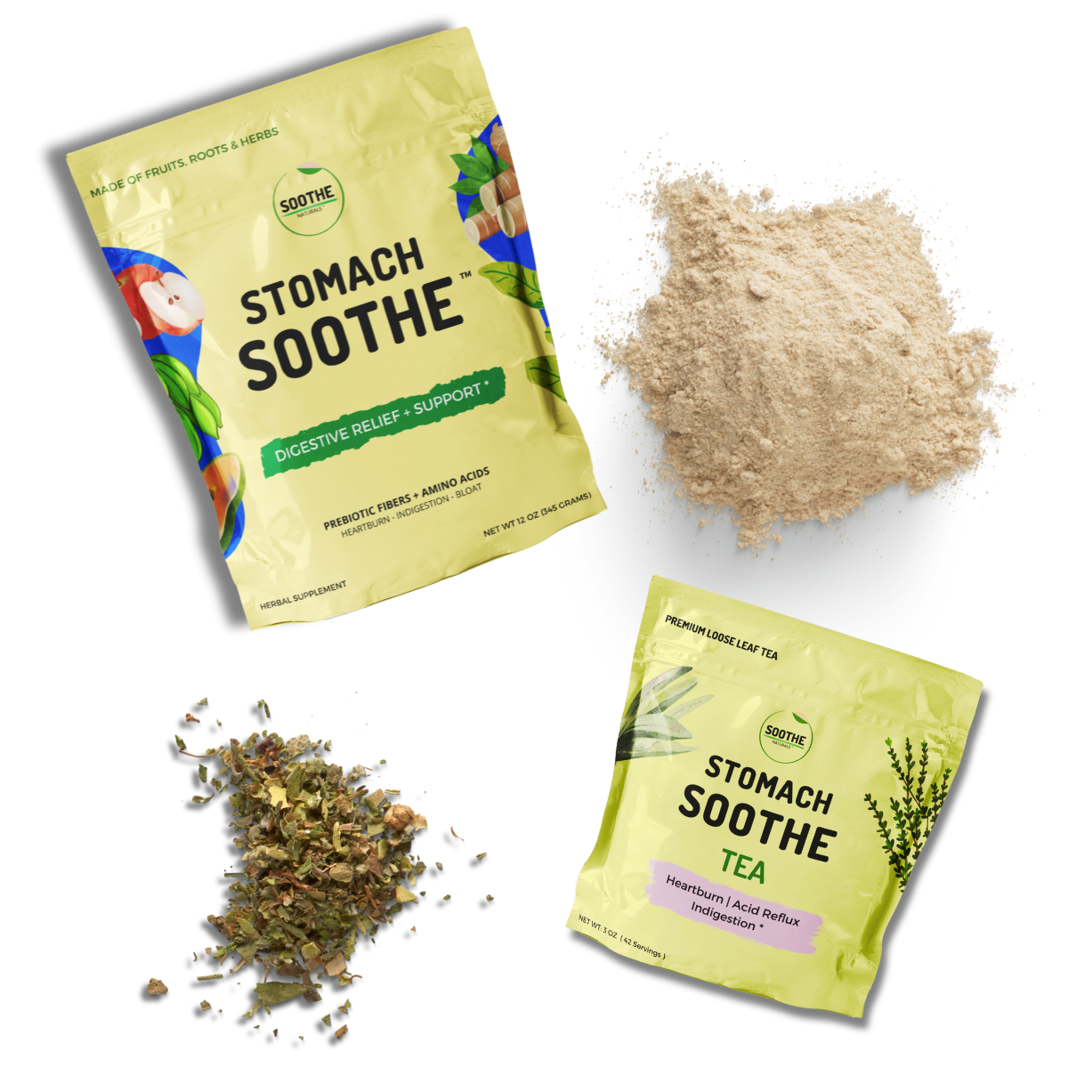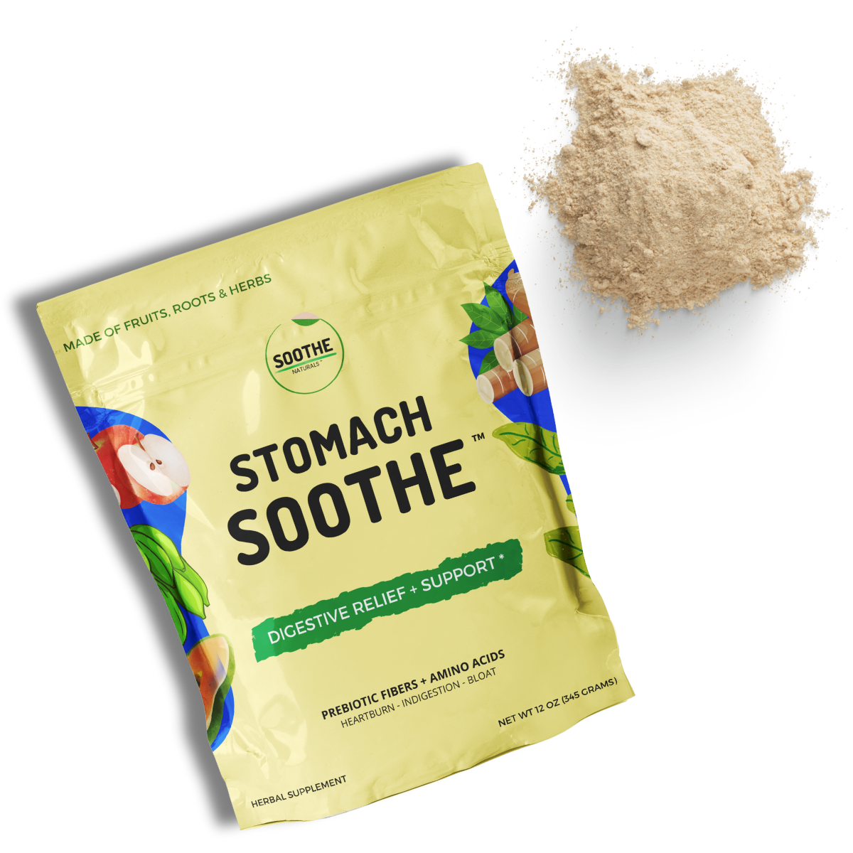 Stomach Soothe™ is a convenient, ready-to-drink powder made exclusively from fruits, roots, and herbs renowned for their digestive relief properties.