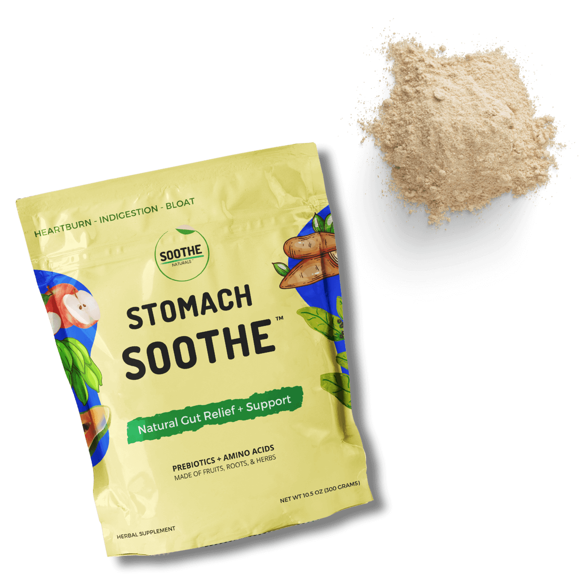 Stomach Soothe™ is a convenient, ready-to-drink powder made exclusively from fruits, roots, and herbs renowned for their digestive relief properties.
